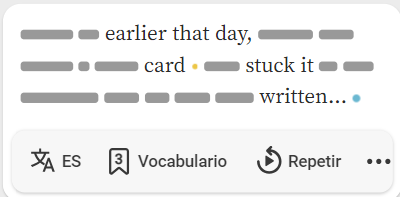 Cuando pauses en una oración, notarás que debajo aparece una barra de herramientas de acción. Esta barra incluye funciones para ver el vocabulario y repetir la oración. Las funciones disponibles dependerán del reproductor que estés utilizando.